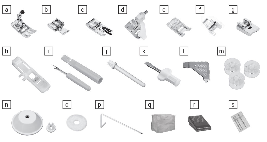 The inside space of the sewing table is used as an accessory box. The included accessories can be found inside the snap-in compartment.